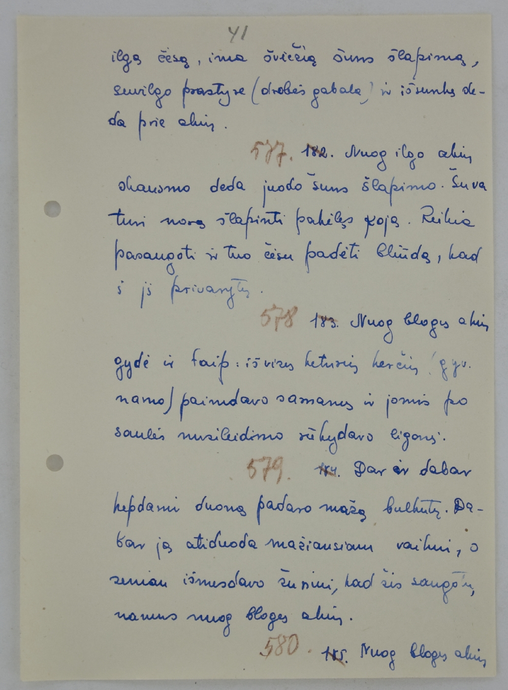 Redaguotas tekstas: Kad akys peršti it žvyro gavusios, gydo sekančiai: nueiti prie didžių juodų skruzdžių skruzdėlyno, jas apspjaudyti, o paskui prikišti akis taip arti, kad skruzdės akysna (atsimerkus būti!) primyžtų. Tas nors skausminga, bet gerai gydo.
