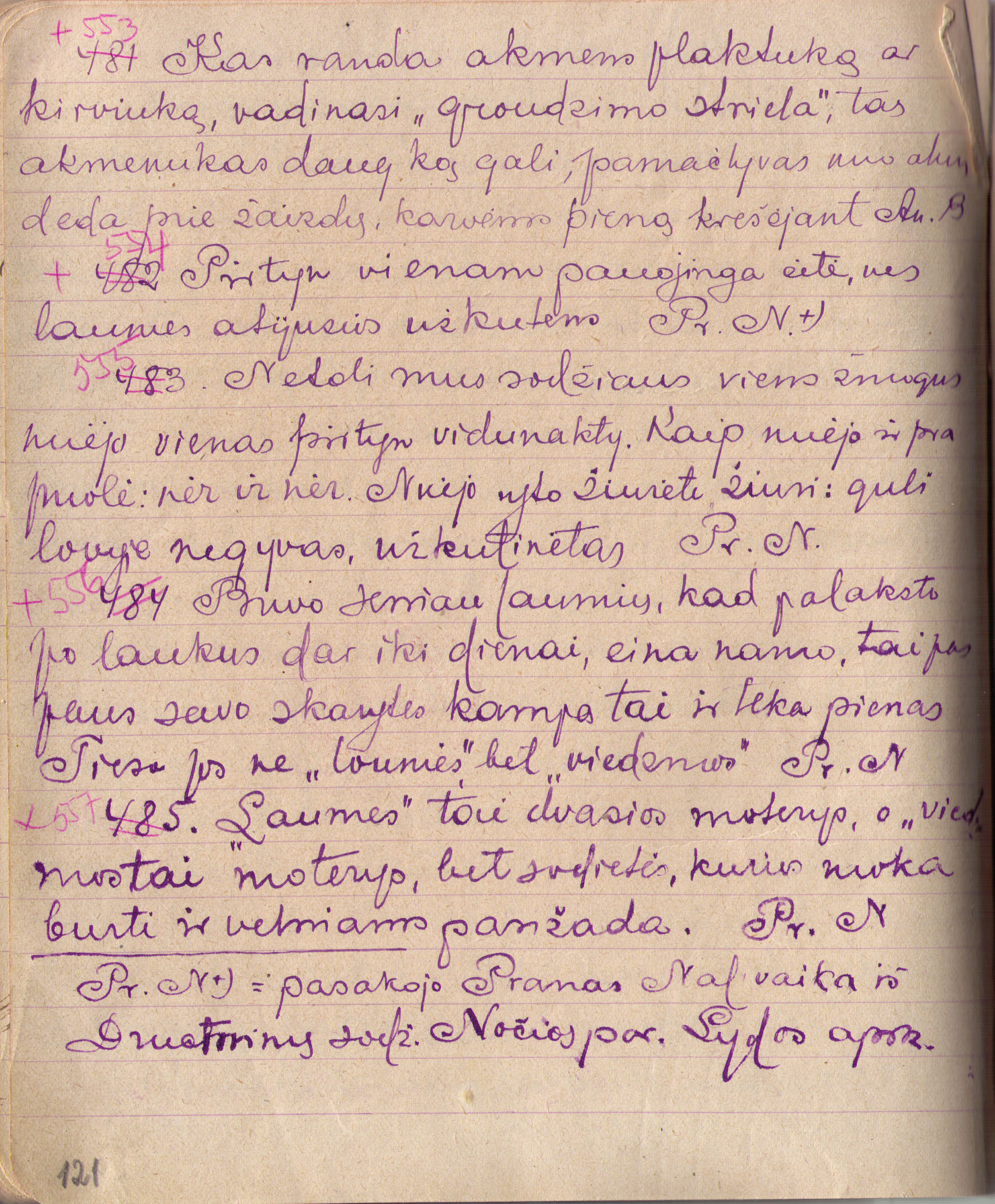 Redaguotas tekstas: Kai randa akmens plaktuką ar kirviuką (vadinasi „groudzimo striela“), tas akmenukas daug ką gali, pamačlyvas nuo akių, deda prie žaizdų, karvėms pieną krešėjant.