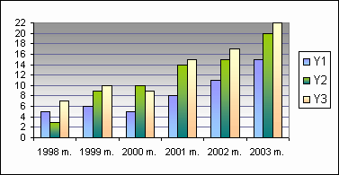 Vieno parametro reikšmes atitinkantys stulpeliai paprastai užpildomi ta pačia spalva (raštu).